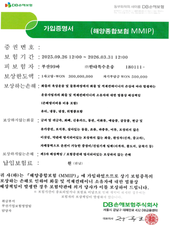 < 해양종합 보험증권 >