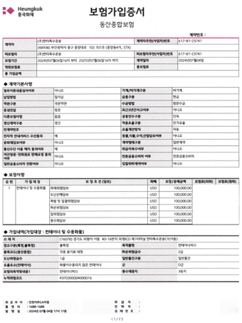 < 동산종합 보험증권 >