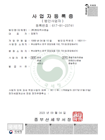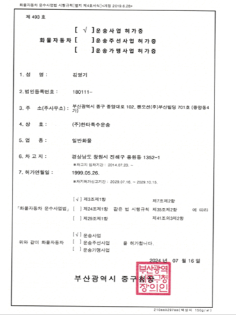 < 운송사업 허가증 >