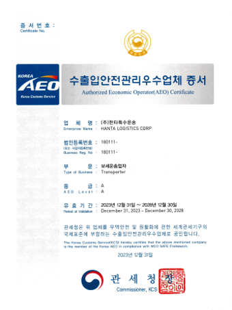 < AEO 인증서 >